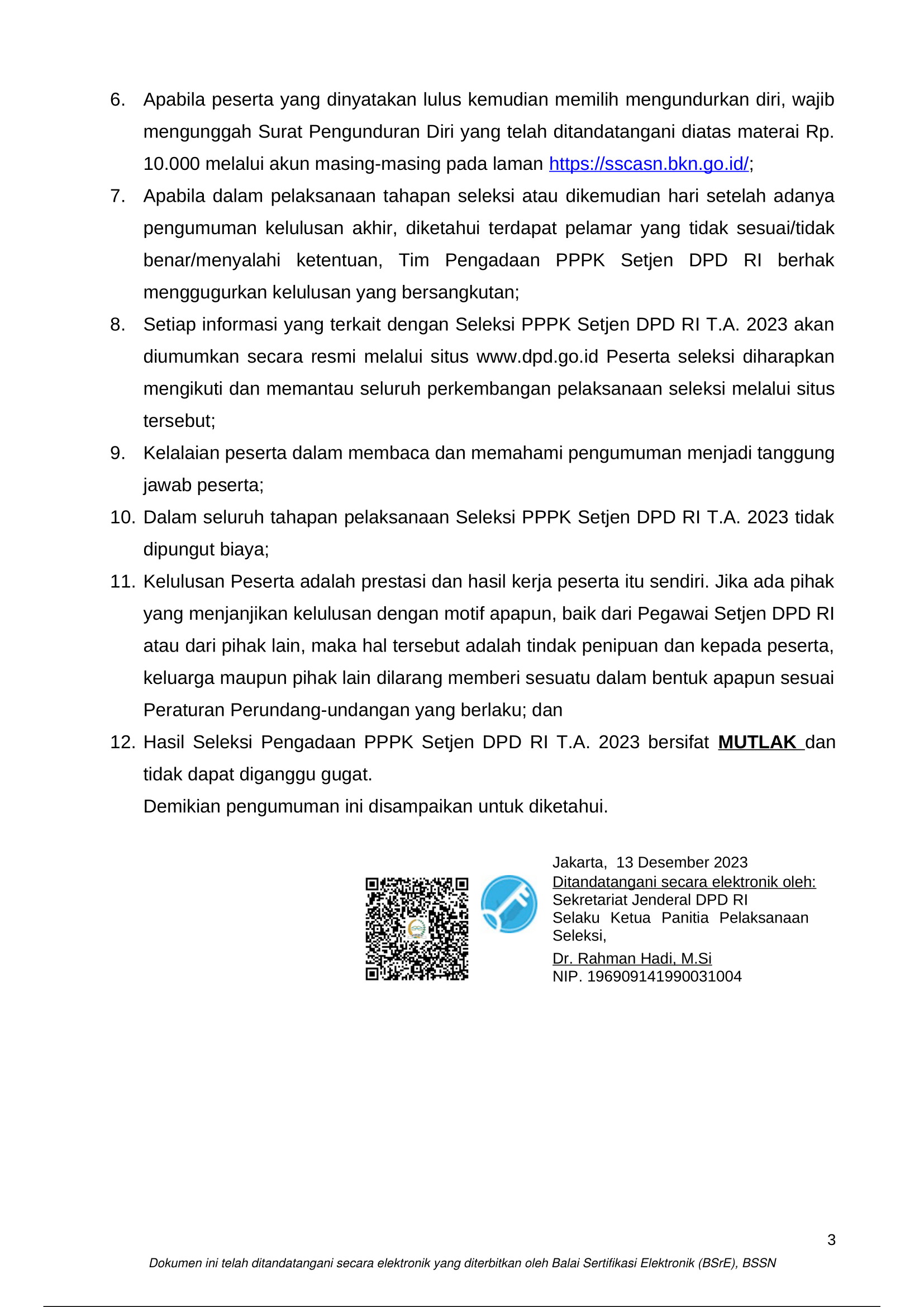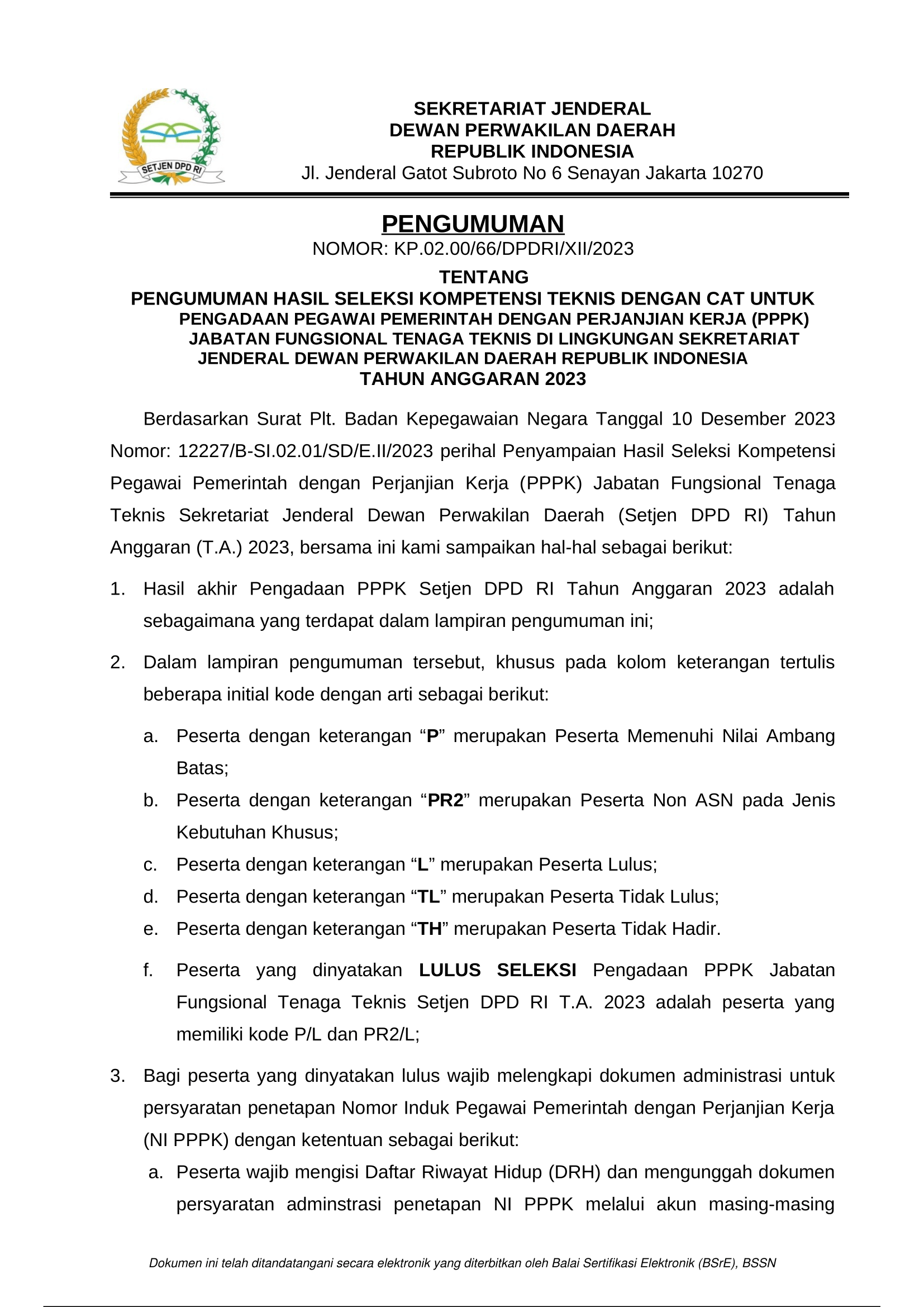 1.Pengumuman Hasil Akhir Seleksi PPPK Sekretariat Jenderal DPD RI T.A. 2023